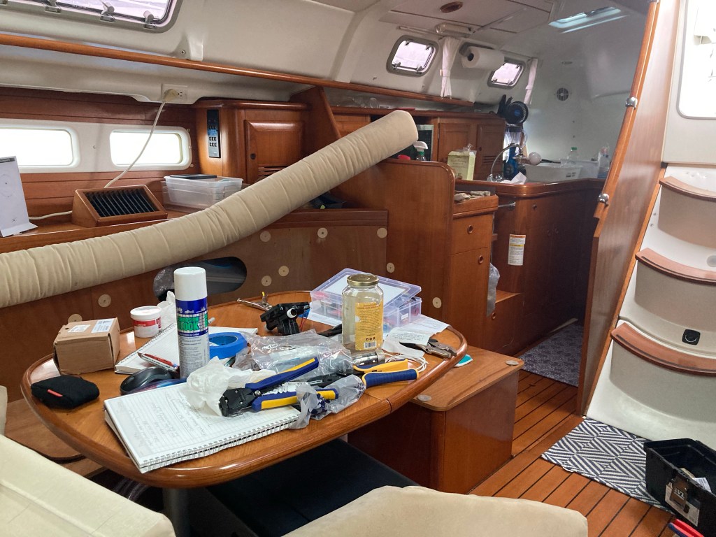 We are doing various projects on the boat building an outside bed in the cockpit and electronics and battery issues and engine transmission issues and repairs with various techs.