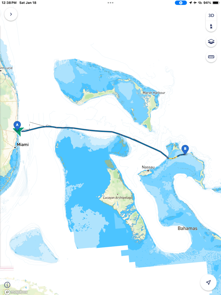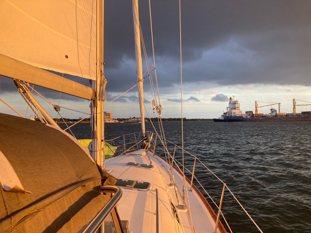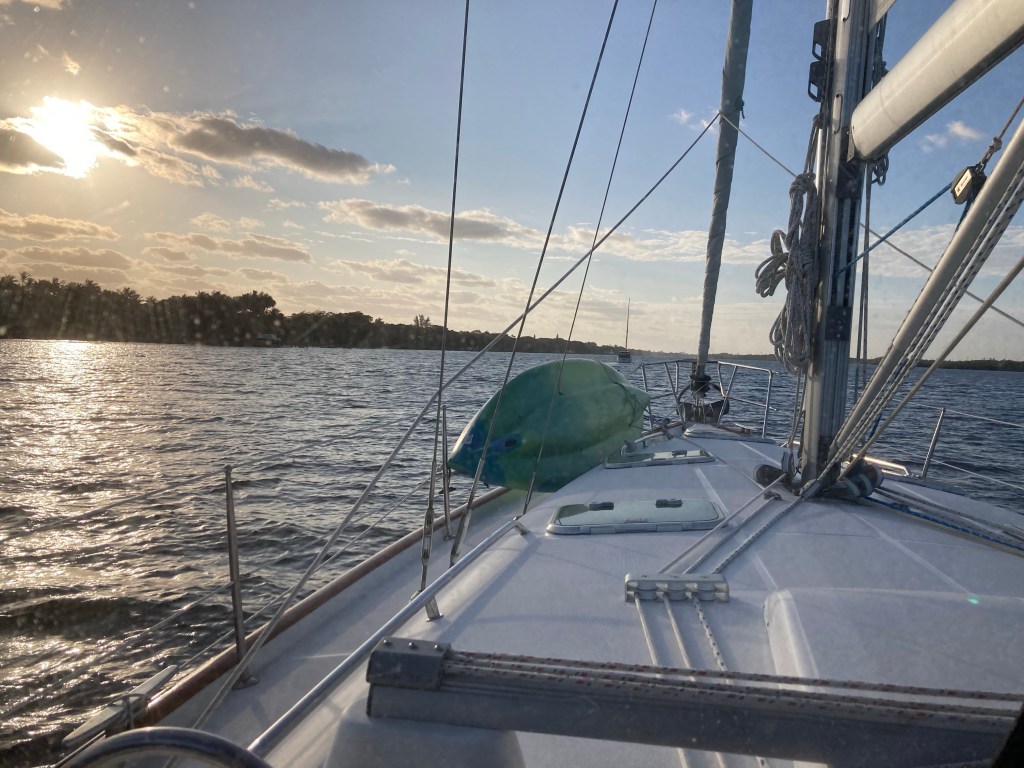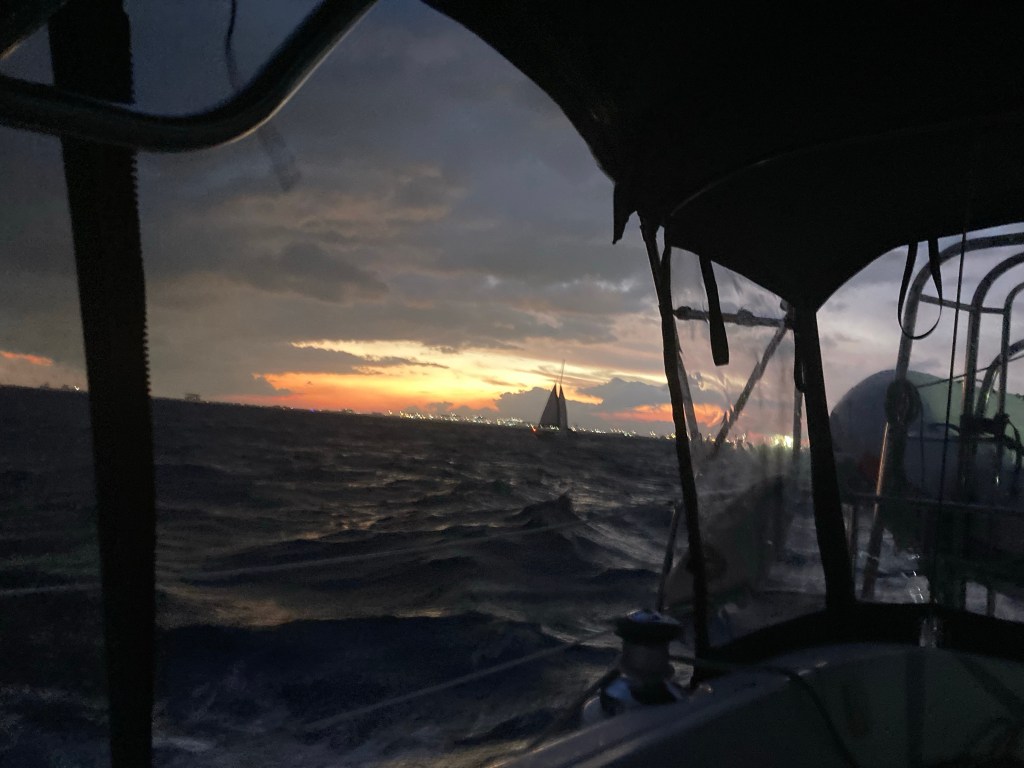 We left Fort Lauderdale about 6pm as the sun was setting and heading due east with high waves and reasonable wind that was dropping.