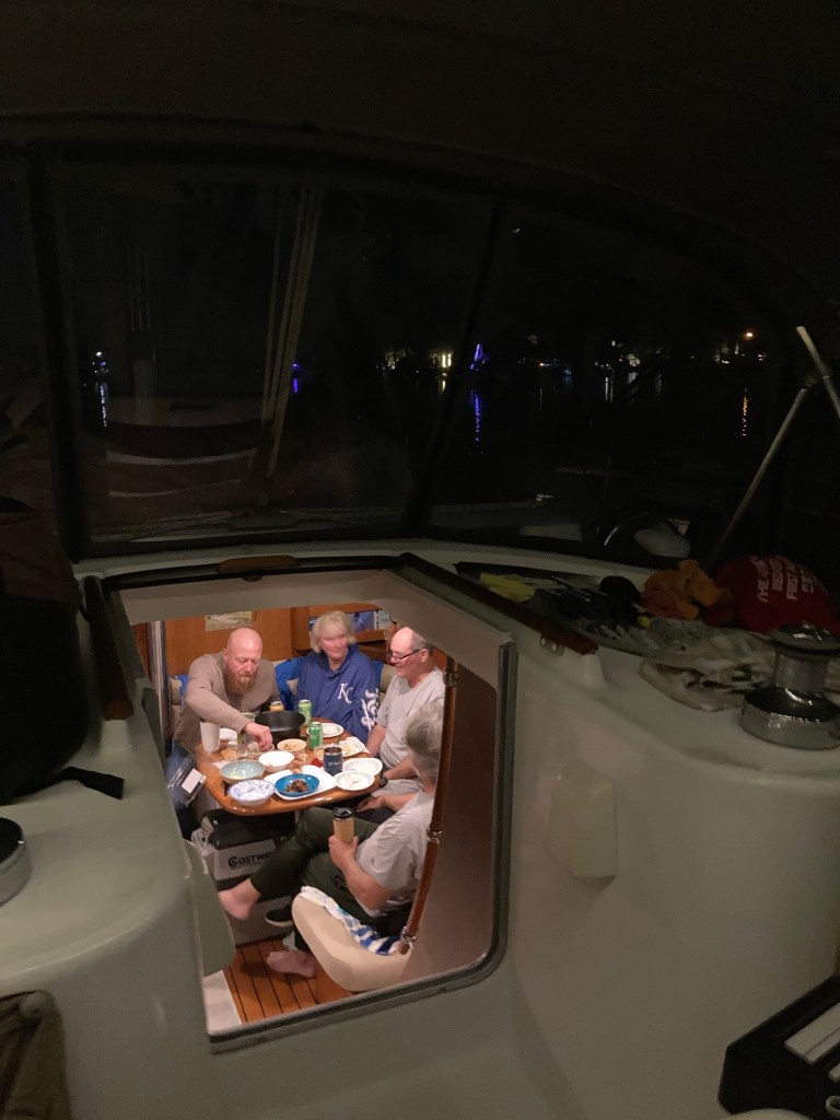 While we continue to make repairs to our boat and prepare and provision the boat for travels south and then cross to the Bahamas, we continually engaged in social gatherings with other cruisers also moored on buoys at the marina.