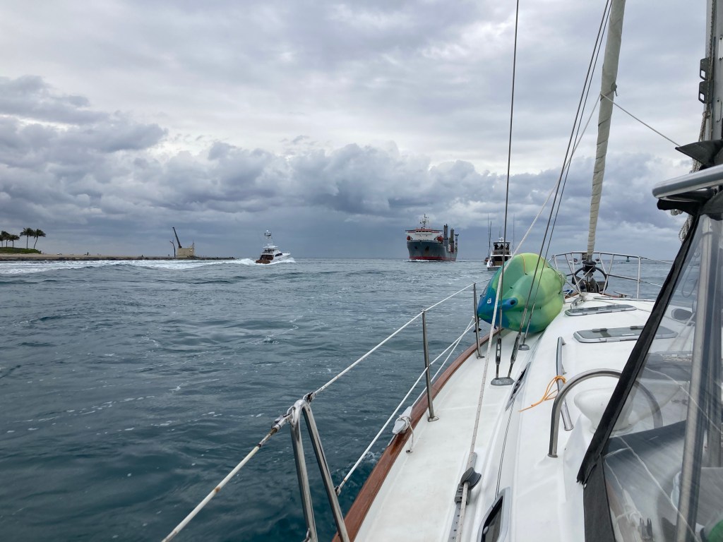 Today we sailed 50 miles south to Fort Lauderdale. It was lively on the Atlantic with winds up to 20 knots and we sailed over 8 knots at times. The inlets to get out to the Atlantic were busy with many boats and tankers and cargo ships and cruise ships. We sailed by mar a largo and hear about a special security operation around the trump house and a notice to mariner’s of a closed area.