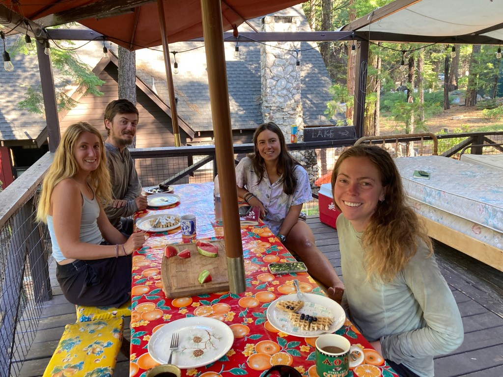 After a slow start, pct hikers getting to sonora pass are discovering our trail angel cabin in pinecrest. Tonight we are hosting 13 hikers for a total of 15 for dinner. we have given a few rides to and from sonora pass and hung out the cabin and the lake with hikers who end up zeroing (taking a full rest day).